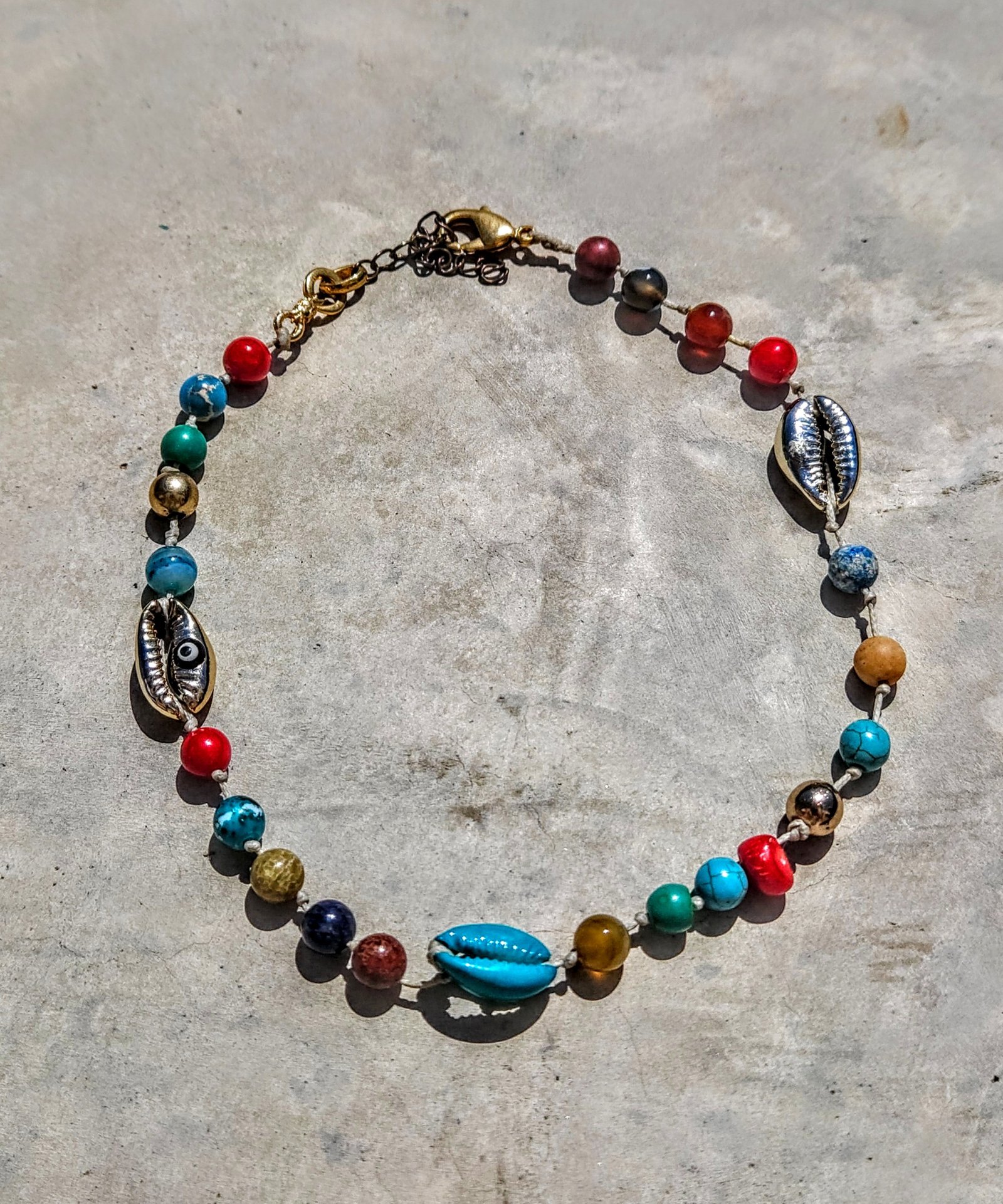 “עדי” היא דגם חוף אתני וצבעוני. שילוב חרוזים צבעוניים קטנים ומגוונים עם פניני קאורי כסופות (צדף קטן). צדף הטורקיז במרכז הוא מרכז הכובד. שובב, קליל ומלא סטייל קיצי.